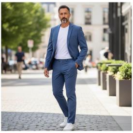 Abito slim fit Uomo Elegante Tessuto tecnico punto milano leggero tasca a toppa ELASTICIZZATO Doppi...