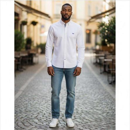 camicia manica lunga basic UOMO tinta unita con logo ricamato A Marchio HARMONT&BLAINE