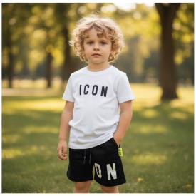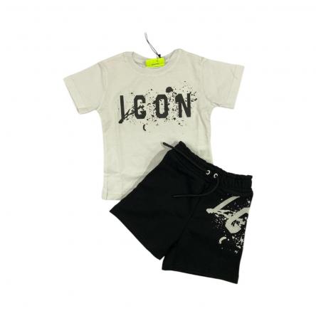 completino bermuda e t-shirt mezza manica bimbo MACRO LOGO 100% Cotone A MARCHIO ICON