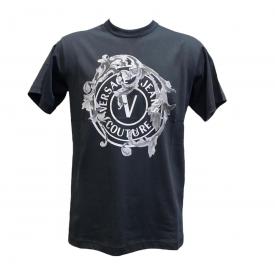 t-shirt mezza manica uomo elasticizzata logo centrale a marchio versace jeans couture