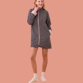 Vestaglia Donna Manica Lunga Abbottonata Tessuto Caldo Cotone A Marchio Vilfram