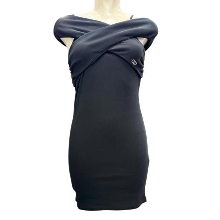 Abito smanicato Ragazza TINTA U NITA A COSTINE elasticizzata colore nero a marchio Liu Jo