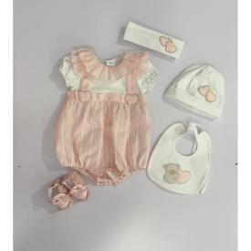 Set Regalo Nascita Pagliaccetto E Body Con Inserti Ricamcati In Tessuto Pique Rigato