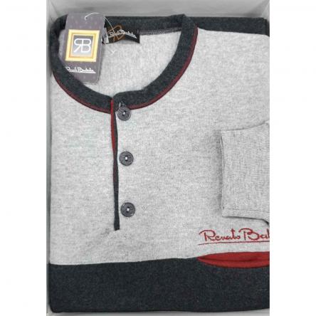 Pigiama Uomo Manica Lunga SERAFINO 3 bottoni con elastico in vista CALDO COTONE Maglia E Pantalone ...