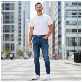 Jeans A Machio Gas Elasticizzati lavaggio scuro Da Uomo Vestibilit? Slim, Vita Regolare, Gamba Asciu...
