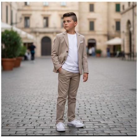 Abito Ragazzo pantalone giacca slim fit tasca a toppa in punto milano e t-Shirt mezza mancia 100% co...