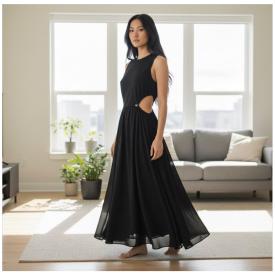 Abito smanicato Ragazza TINTA U NITA A COSTINE elasticizzata colore nero a marchio Liu Jo
