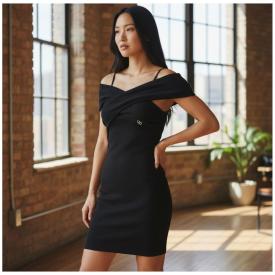 Abito smanicato Ragazza TINTA U NITA A COSTINE elasticizzata colore nero a marchio Liu Jo