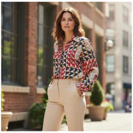 camicia donna manica lunga fantasia con logo ricamato A Marchio HARMONT&BLAINE