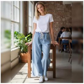 Pantalone cropped da donna con gamba leggermente scampanata nel più tradizionale stile anni '70 e...