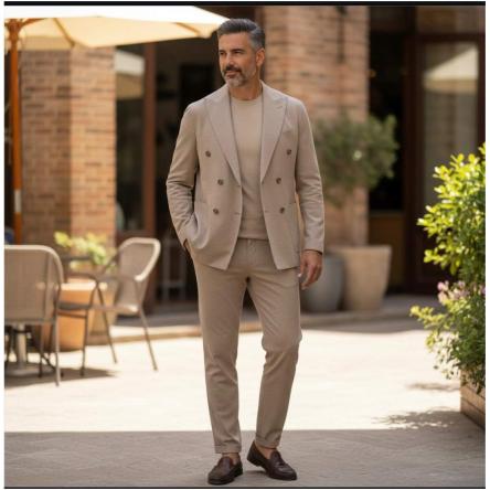 Abito slim fit Uomo Elegante Tessuto tecnico punto milano leggero tasca a toppa ELASTICIZZATO Doppi...