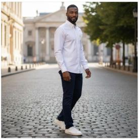 Camicia Uomo Manica Lunga Collo Francese In Tessulo Mussola Di Cotone Elasticizzata Slim Fit