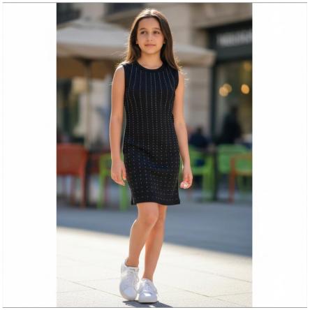 Abito smanicato Ragazza TINTA U NITA A COSTINE elasticizzata colore nero a marchio Liu Jo