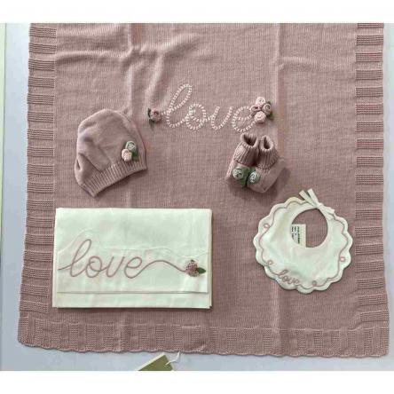 set priuma nascita in caldo cotone con applicazione in tullle a marchio blumarine cosi composto :